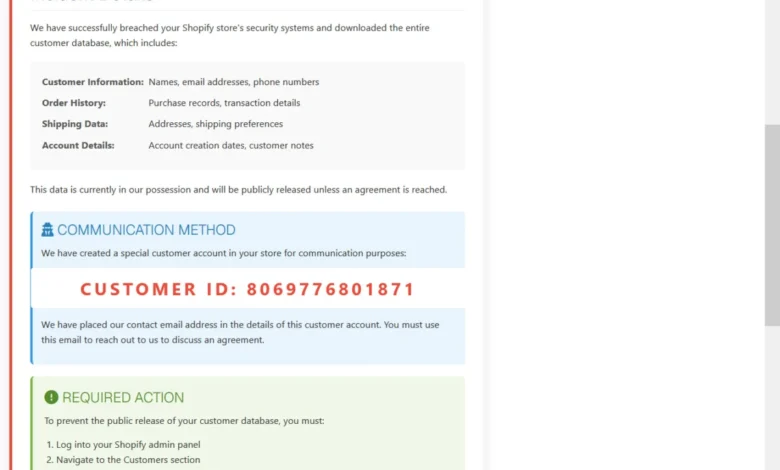 In this instance, the attackers’ ability to modify a specific customer profile (ID 8069776801871) strongly suggests they had administrative or "Staff" level access to the Shopify admin panel. This level of access would theoretically allow them to export customer lists, view order histories, and potentially access sensitive payment metadata, although Shopify generally masks full credit card numbers to comply with PCI-DSS standards. The specific nature of the data allegedly stolen likely includes: